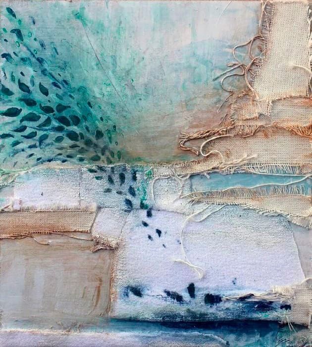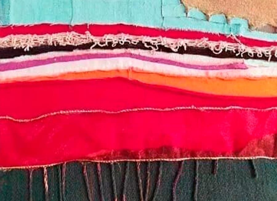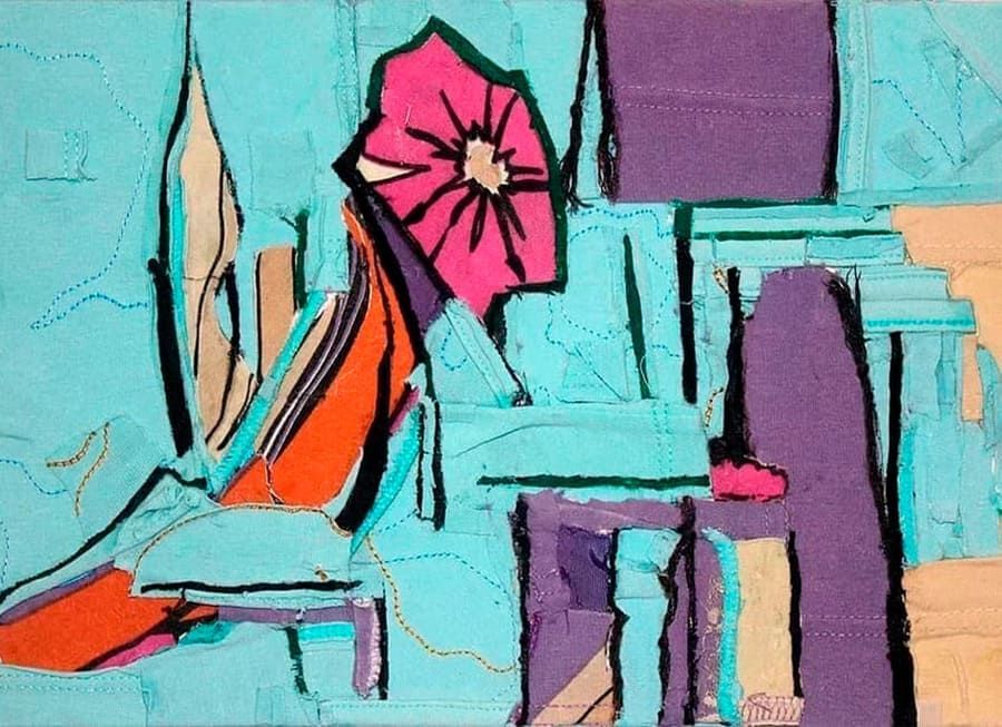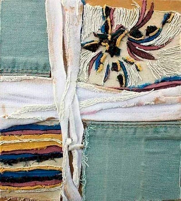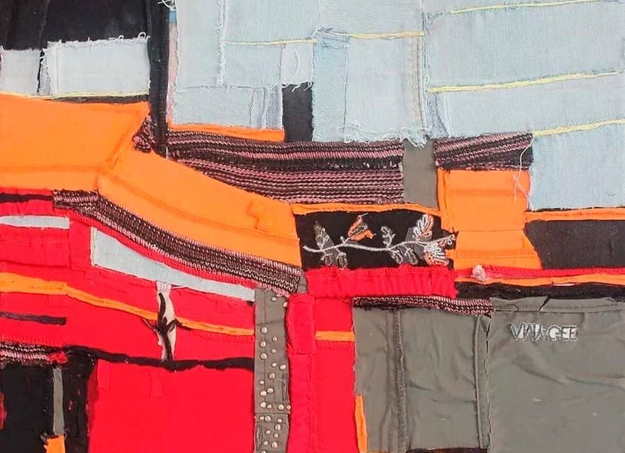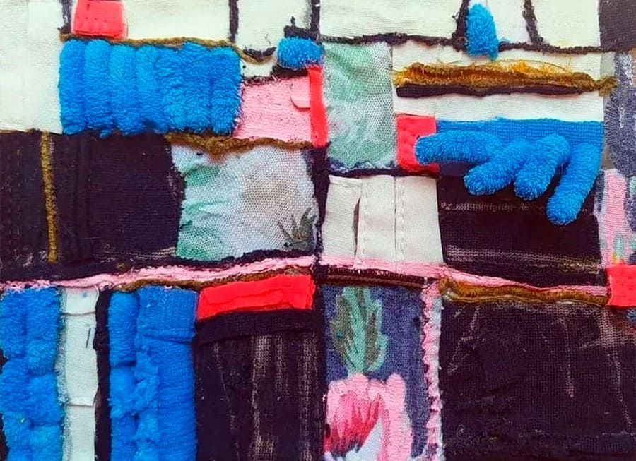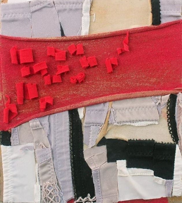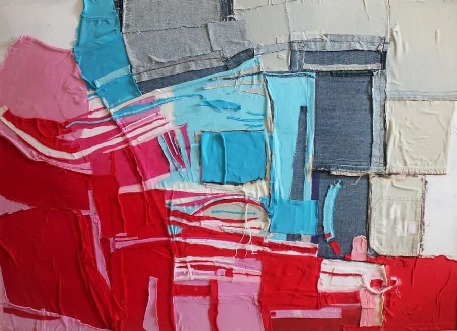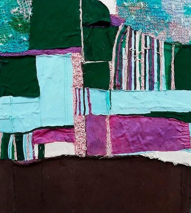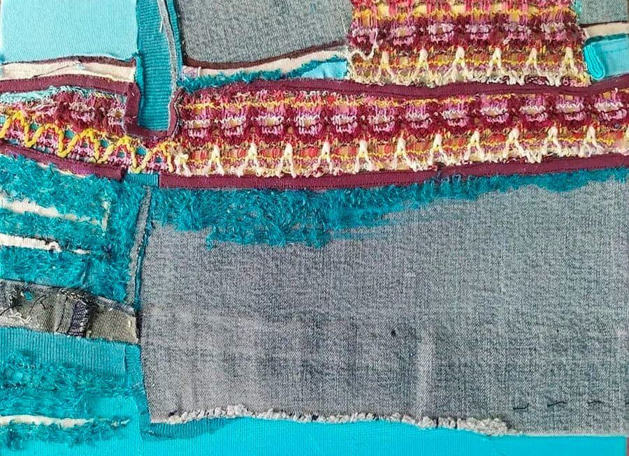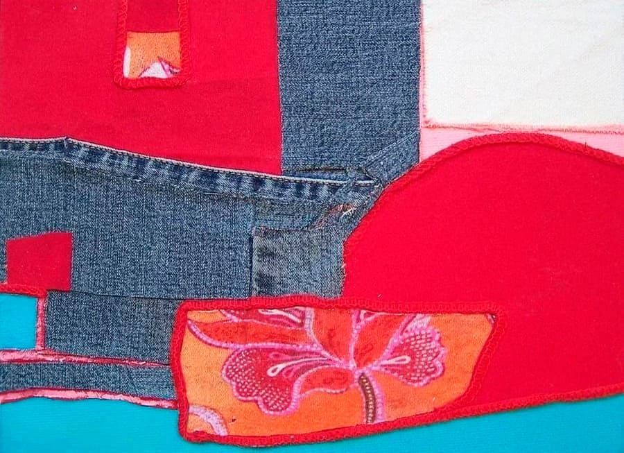 A lo largo de varios años he ido trabajado en estas piezas de soporte bidimensional busco el juego y el equilibrio de color y texturas aplicando pintura, y sobretodo retales de prendas de ropa de mi familia.